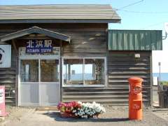 | 7:46 | 浜小清水駅到着。確か浜小清水には浜小清水郵便局前に丸形ポスト設置となっているのに、駅となりにある商店らしきところの前に丸形ポストを発見。丸形ポストが移転したのか、新発見なのか…。詳しいことはあとで訪れるので、ひとまずは北浜駅に向かう(というか、いったん通り過ぎたので「戻る」なんですが(^^;)。 |