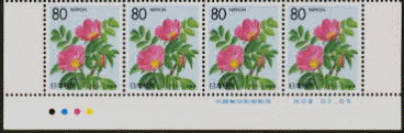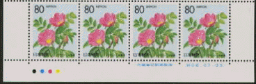 | 10:00 | つどい2日目の郵趣講座・その2、函館支部の浜谷彰彦さんの「記念切手収集の楽しみ方」の講談。変則目打についての紹介。私のHPでも紹介済のふるさと切手北海道版「ハマナス」80円についても紹介していました(初版は上下の耳紙に5ヶ所、1つ分の目打ちが開けられていますが、2版はそれがありません)。 |