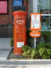 | 13:50 | 「はこだて明治館」(旧函館郵便局局舎)の前にある丸形ポストを撮影する。やっと、今日の年月日入りの看板つきで撮影できました(^^)。「私は1901年に生まれ…」とありますが、このポスト自体は昭和41年の製造(新東洋製)ですので、まだ「36歳」です(^^;。 |