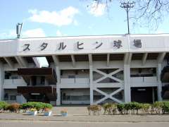 | 13:48 | スタルヒン球場に到着。スタンド北西側にスタルヒン投手の銅像があり、デジカメで撮影する。スタルヒン投手はロシア人なんですよね。こうして考えれば、ホントに北海道はロシアと深いつながりがたくさんあったんんですね。アメリカだけじゃなく。こういう功績を後生まで残す状況をみると改めて、人と人とのつながりは国境は関係ないと思います。(旭川春光六局(〒070−0991)の風景印にスタルヒン球場とスタルヒン投手の銅像旭川美術館が描かれています) |