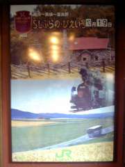 | 16:00 | SLふらの・びえい号が美瑛駅を発車する。自分の指定された席にはいかず、スタンプコーナーでSLふらの・びえい号のスタンプを押す。若干、スタンプが汚れていたので、掃除を念入りにしたため、20分近くかかってしまう。スタンプ押印途中、SL車内の売店営業が16時10分までということで、売店でSLふらの・びえい号の絵はがき(1枚150円)を買う。 オレンジカード販売の巡回があったのですが、SLすずらん号などのはあるものの、旭川車掌所ではSLふらの・びえい号のは元々制作していないため、販売していないとのこと。やっぱり、オレカを買うなら、SLふらの・びえい号のでないと意味がないので、オレカは買わず。 |