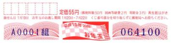 連休も終わり、今日から久々の仕事…でも、昼休みと仕事が終わったあとは「局廻り」。文化人切手の初日印(絵入りハト印)押印のため、札幌中央局に寄ったのですが、それ以外は昨日に引き続き、絵入り年賀葉書北海道版「冬の羊」がA0001組の捜索です。しかし、昼休み3局、仕事帰りに2局寄ったものの見つからず。今までの販売局と組番号との関連として、札幌中央局管内はA0006組とA0007組のみ、郵便番号が06台の豊平局と札幌東局がA0008組なので、〒06台の局はA0001組が出現する可能性は非常に低いと判断し、〒00台を確認したのですが、札幌北局はA0004組、篠路局はA0002組と残念ながらA0001組は見つからず。ここで思い切って、〒00・〒06台でない局を調査することに。で、仕事が終わってから寄ることができる〒00・06台以外の局で札幌に比較的近い局…と、いうことで、小樽局(〒047−8799)に電話したところ、A0001組とのこと。やっと発見できました。で、札幌中央局から18時35分に電話をしたため、今から行くとなれば、ゆうゆう窓口での購入(郵便窓口は平日19時までの営業。ゆうゆう窓口は郵便窓口営業時間を含めて24時間営業)となるため、ゆうゆう窓口販売分もA0001組かどうかも念のため確認したところ、こちらも用意している200枚分はA0001組とのこと。で、早速必要分を「電話予約」し、札幌駅から19:14発・小樽行快速エアポート185号に乗って小樽に向かい、19:46・小樽着。で、小樽局には19:53着。そして、無事A0001組の年賀葉書を購入することができました(^^)。