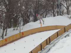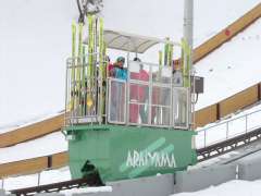 今は自分で階段を上がる必要はなく、ゴンドラが斜面に沿ってジャンプ場の上まで運んでくれます。もちろん、自動・遠隔操作による運転です。 |