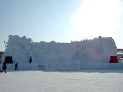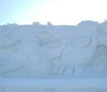 | 9:09 | おーろらターミナルから200m先の網走商港埠頭広場で「第38回あばしりオホーツク流氷まつり」が今日から開幕。メイン雪像は小型印でも登場の「クリオネ物語」。ただ、朝方は逆光なので、全体を写すと雪像がはっきり見えないので、分割して撮影して切り貼りしてみました(^^)。 |