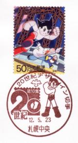 そうなれば、2003年4月7日(月)にはアトム切手(1997年1月28日発売「戦後50年メモリアル」第5集の2種、2002年5月23日発売「20世紀デザイン切手」第10集の2種の計4種)に「生誕記念」ということで、高田馬場郵便局(無集配特定局)の和文印を記念押印するといいですね(^^)。私は郵頼する予定です。(2003.2.19提供)