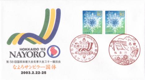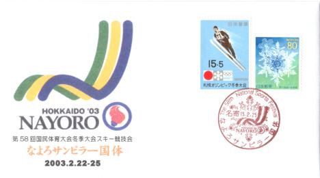 | 15:10 | そのあと、昨日の夜に即席でつくった、なよろサンピラー国体のカバーを作成する。小型印に「雪の結晶」が描かれているので、切手にも「雪の結晶」を使う。そして、ジャンプ観戦&応援に行ったピヤシリシャンツェが描かれている風景印ももちろん押印する。あと、ジャンプ競技にあわせて、札幌五輪のジャンプ切手(+「雪の結晶」)を貼ったカバーにも小型印を押印する。なお、名寄国体のシンボルマークで「N」の文字をジャンプ台に見立てたものです。 |