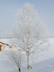 | 8:20 | 上智恵文局に向かう途中、道路沿いの風景を撮影する。上段・左側の写真は上空だけもやっている状態。上段・右の写真は天塩川の写真です。川の上はほとんど凍っていました。下段の写真、白樺の樹氷もほんと素敵です。気温は−20度近くですが晴れていたので、気持ちよい寒さでした。 |
