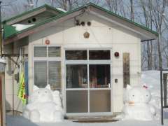 | 8:34 | 局の手前にある智恵文駐在所の前には、かわいい2匹のネコの雪像がありました。 |