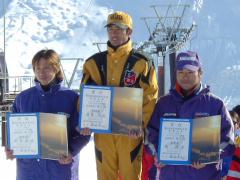 成年C組は1本目82.5mを飛んだ2位清水選手(新潟)と1位松井選手(東京)の一騎打ち。まずは2位の清水選手が飛び、1本目より飛距離を伸ばして84m、テレマークは決めらなかったものの、この時点でトップ。 そして松井選手は83m以上、テレマークを決めれば優勝という状況で、76mと失速。この時点で清水選手が逆転優勝。北海道勢は小川選手(札幌環境サービス)が5位、地元・名寄市役所の高畠選手は7位入賞を果たしました。 |