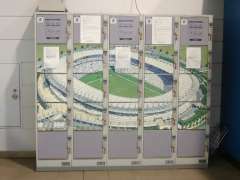 駅改札口横にあるコインロッカーは東京スタジアム…じゃなく、味の素スタジアムのイラストが入ってました。 |