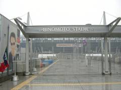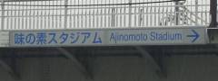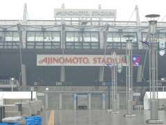 そして、「東京スタジアム」改め「味の素スタジアム」前に到着。もちろん、ゲート入口、競技場の看板などすべて「AJINOMOTO STADIUM」となっていました。 |