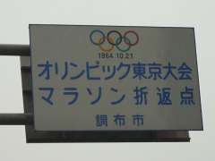 そして、「味の素スタジアム」横の国道には「オリンピック東京大会マラソン折返点」なる標識がありました。競技場(味の素スタジアムは陸上競技場じゃないけど)の横にマラソン折返点があったというのも不思議な感じがしますね。 |
