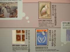 日本の切手の歴史についてもパネル10枚で紹介。世界の珍しい切手や印刷技法ごとの紹介もあり、じっくり見ると非常に勉強になります。 |