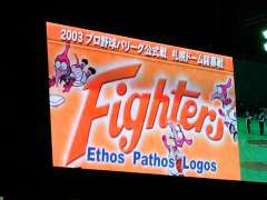 ●2003札幌ドーム開幕戦、日本ハムvsオリックスは「2試合連続」引き分け… 今日、札幌ドームにおけるプロ野球公式戦の2003年開幕戦、日本ハムファイターズvsオリックスブルーウエーブの試合が行われました。 札幌ドームで行われる日本ハムの試合のとき、北ゲート前で日本ハムのファンクラブ入会申し込みコーナーがあり、早速入会いたしました。大人(15歳以上)は3000円。今回は特別に来年の2004年まででの料金ですので、非常に「お得」です。外野席自由席なら1500円のところ、試合当日にファンクラブ会員証を提示すると300円引きの1200円となるため、試合観戦10試合で元がとれます(^^)。 なんとか、試合開始の18時までに到着。1回表から試合を堪能できます(^^)。