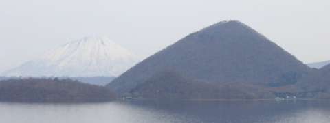 国道230号線を札幌に向けて走っていると、左手にずっと羊蹄山が見えているのですが、山頂だけ雲がかかっていて、ちょっと残念(^^;。喜茂別町市街の手前で撮影しました。 |