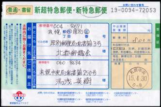 4月1日から取扱開始された札幌市内取扱開始の「新特急郵便」(詳しくは「北海道・郵趣ニュース/4月1日から札幌市内で新特急郵便を取扱開始」をご覧願います)を実際に利用してみました。