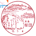 | 15:20 | 蟹田駅から200m離れたところにある蟹田局に行き、葉書を自分あてにポスト投函する。葉書には風景印の押印希望という「帯紙」をつける。 |