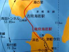 | 13:15 | 青函トンネル記念館の2階で30分おきに青函トンネル建設のビデオ放映を行っているので、鑑賞。先進導坑や本坑の貫通が行われた瞬間や建設に携わった方が貫通のときの感想を話しているところを見て、私も感極まって涙があふれてしまいました(^^;。 |