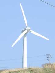 | 13:00 | 青函トンネル記念館の外へ出ると、東北電力が行っている風力発電の風車が気持ちよく回ってました。青函トンネル記念館は龍飛岬よりちょっと南なので、岬へ行くことはできませんでしたが、それでもやはり風そこそこありました。でも、5月上旬としては心地よい風でした(^^)。 |