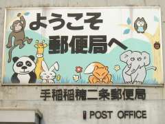 | 14:41 | 手稲稲穂中簡易局前の300m先、手稲稲穂二条局をデジカメ撮影する。局の入口上(局名の上)には「ようこそ郵便局へ」という動物入り(サル、パンダ、キリン、ウサギ、キツネ、ゾウ、フクロウ、てんとう虫)の看板がありました。子どもがすごく喜ぶような看板ですね(私もすごく喜んでます(^^))。 |
