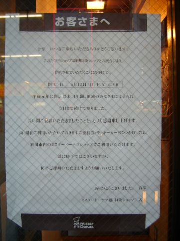 ●ミスド・旭川4条ショップ、今日限りで閉店! |