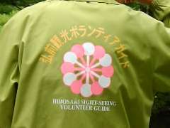 6:25・弘前公園・東門に到着。弘前観光ボランティアガイドが待っていて、弘前公園内の観光案内を歩きながらしていただきました。で、テレビカメラや記者が同行していたので何でかな?と思っていたら、この無料観光バスとボランティアによる早朝観光ガイドは今日が初めてということでの取材でした。 |