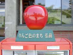 再び100円バスに乗るため、市役所前バス停に戻る。市役所前のポストもJR弘前駅と同じくりんごの置物が上に乗っていて、デジカメ撮影する。 |