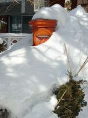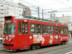 札幌南十八条局は電車通り(札幌市電)に面していて、貯金の準備をしていたときに、不二家の広告電車が西4丁目方面に向かって通り過ぎたので、局を出たあと、折り返してくる電車を待って、やっと撮影してきました(^^;。なお、ミルキーの広告の反対側はカントリーマアムです(反対側の撮影はできなかった(^^;)。(2003.6.27提供) |