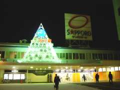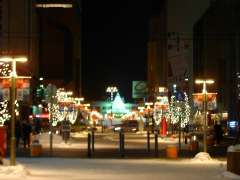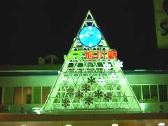 「JR旭川駅」の下にある「雪の結晶」は時間によっていろんなパターンで点滅を繰り返しして、幻想的な雰囲気を出しています。 |