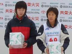 今日の大会は特殊なため、最長不倒賞はありませんでした。表彰式のあと、今日が成人式ということで、今年成人となった高野選手と桐生貴幸選手(写真左、東洋実業グループ)に札幌スキー連盟から記念品が贈呈されました。なお、今日の大会ですが、大学生がインカレが控えているため、全員欠場しています。 |