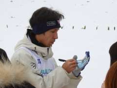 表彰式終了後、今日も葛西選手は残った観客全員に対して握手やサインをするファンサービスをしていました。この姿勢は素晴らしいです。 |