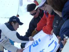 表彰式のあと、東選手が東選手応戦の横断幕にサインをしてくれました。 |