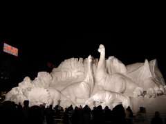 ●10丁目会場 「これが恐竜だ!」(大雪像) 高さ12m 幅24m 奥行き18m 卵から生まれた赤ちゃん恐竜や天を仰ぐような大型の恐竜などを再現した大雪像 |