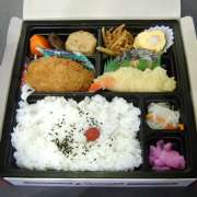 座席確保のあと、昼食としてドーム内で売られているサザエ食品の「必勝弁当」(700円)を買って食べる。