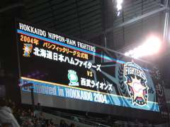 1回裏、北海道日本ハムの攻撃。1番・坪井選手は西武・松坂投手の初球・ストレートをライト線に運び、1塁を回って2塁へ走る。ライトからセカンドに送球され、間一髪のタイミングはセーフの判定。いきなり無死2塁と先制チャンス。2番・SHINJO選手はサードファールフライ、3番・小笠原選手は四球で、1死1・2塁。4番・セギノール選手の初球、西武の捕手・野田選手がパスボールで走者は2・3塁へ進塁。セギノール選手はセンターへ犠牲フライで、3塁走者・坪井選手が生還し、北海道日本ハム1−0と先制。