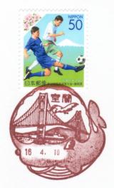 11:40・室蘭局に行き、サッカーが描かれている昨年の国体切手に風景印を押印する。 |