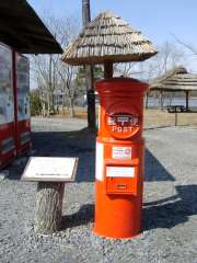 ポストの集荷時刻表示の下にはお知らせがあり、丸形ポストに投函した郵便物には「アイヌ民族博物館臨時郵便局」小型印が押されるとのこと。私が昨年、小型印使用直前の2003年10月25日の日記録で「できれば、11月からはこのポストに投函した郵便は小型印押しにしてほしいですね(^^)。」と書いたのですが、そのとおりになってましたね(^^)。ひょっとして、この日記録を見ていた…ナンテネ(^^;。 |