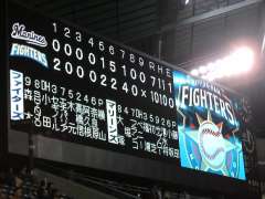 今日は札幌ドームで北海道日本ハムファイターズ−千葉ロッテマリーンズの試合観戦。地下鉄さっぽろ駅によって広告入り共通ウィズユーカードを買ったあと、札幌ドームに向かう。地下鉄福住駅到着は18時10分で試合開始(18時)を過ぎてしまう。走りながらラジオ中継を聞いていたら、ドーム到着前、1回裏・北海道日本ハムの攻撃、2死1塁で4番・セギノール選手が右中間への2ランホームラン!北海道日本ハムが2−0と先制!ホームランが見られなかった(^^;。