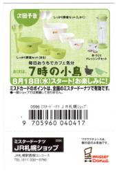 その次のキャンペーンは北海道&西日本と北海道以外の東日本のキャンペーンを入れ替えとなり、北海道&西日本は「毎日おうちでカフェ気分 7時の小鳥」キャンペーンが8月18日(水)スタートとなります。(2004.9.28提供)