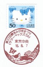 どれも素敵な小型印ですね(^^)。特にねこちゃんがハンモックで寝ている小型印はほのぼのとしていて、特に好きです。と、いうことで、ちょうちょとねこ…つながりで、チョウ入りのキティちゃん切手を使ってみました(^^)。 |