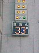 (写真は、今日午後6時半時点の明治生命ビル(大通西3丁目)の温度計)