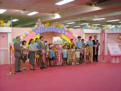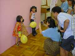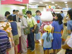 私は、実行委員として「ハローキティといっしょに写真」コーナーで、デジカメでこどもたちを写した写真をパソコンに取り込んで、キティちゃんといっしょに葉書に印刷されるサービスを担当していました。1枚100円で3パターンありましたが、すごい客で中には撮影から出来上がりまで1時間以上待ちがありました。お客様に対して大変お待たせしてしまい、誠に申し訳ございません。