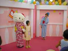 「ハローキティといっしょに写真を撮ろう」では、浴衣を着たハローキティがこどもたちと次々に写真に収まっていました。
