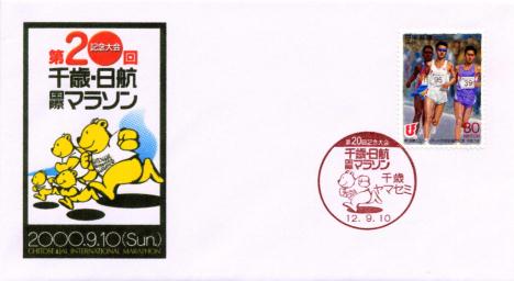 第20回記念大会 千歳・日航国際マラソン 千歳ヤマセミ局小型印(2000.9.10)