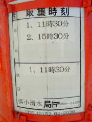 | 集配郵便局 | 浜小清水局(〒099−3499) |