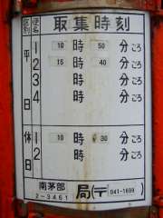 | 集配郵便局 | 南茅部局(〒041−1699) |