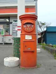 JR登別駅を西(左手)に約400m行ったところにあるセイコーマートなりた前に丸形ポストがあります。セイコーマートの営業時間は朝6時から深夜1時までです。(2002.6.18提供) |