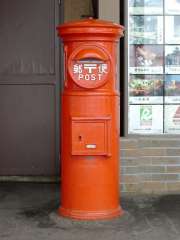 JR小樽駅(函館本線)の前(駅に向かって左手)に丸形ポストが設置されています。昔から置かれていたわけではなく、以前は差入口1つの角形ポスト(角形3号)が設置されてましたが、2000年頃に丸形ポストに置き換わりました。(2002.10.14提供) |