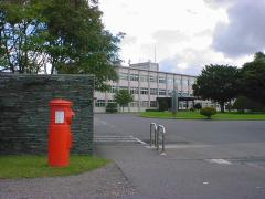 苫小牧工業高等専門学校の校門前に丸形ポストがあります。校門を通り過ぎる学生をいつも丸形ポストが「見守っている」状態ですね。 |