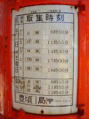JR豊頃駅から約3.5km先、豊頃駅方面から茂岩橋を渡り、道道旅来豊頃停車場線(道道320号)を左折して200m先にある、豊頃郵便局前に丸形ポストが設置されています。郵便物の取り出し口がポストの正面ではなくポストに向かって右側にあります。(2003.9.14提供) |